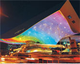 A place where cinema fanatics gather. The center has held special screenings of major directors and genres, introducing the public to high quality art house movies and at the same time bringing locally produced independent movies to people. The asymmetrical big tube cantilever roof with 120,000 LED lights and measuring 85m in length boasts spectacular night views.