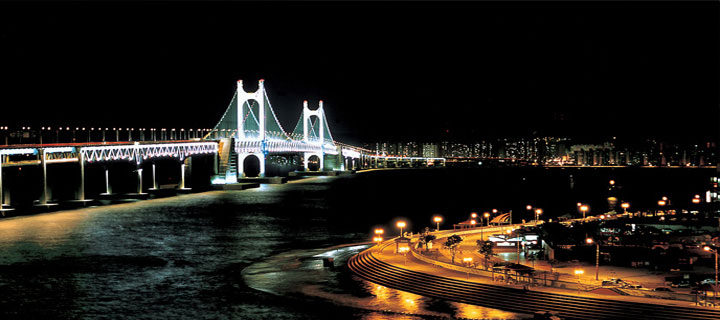 Gwangan Bridge stretches over 7.4km and is the largest bridge over the ocean in South Korea. The bridge showcases wonderful night views and the upper part of the bridge captures the scenery of the sea and nearby cities.
