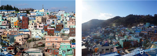 Gamcheon Culture Villiage, as shown below, lead to the village's cultural houses formed in the cascade foothills area. The village was recreated by local residents as a place where you can enjoy the sights.